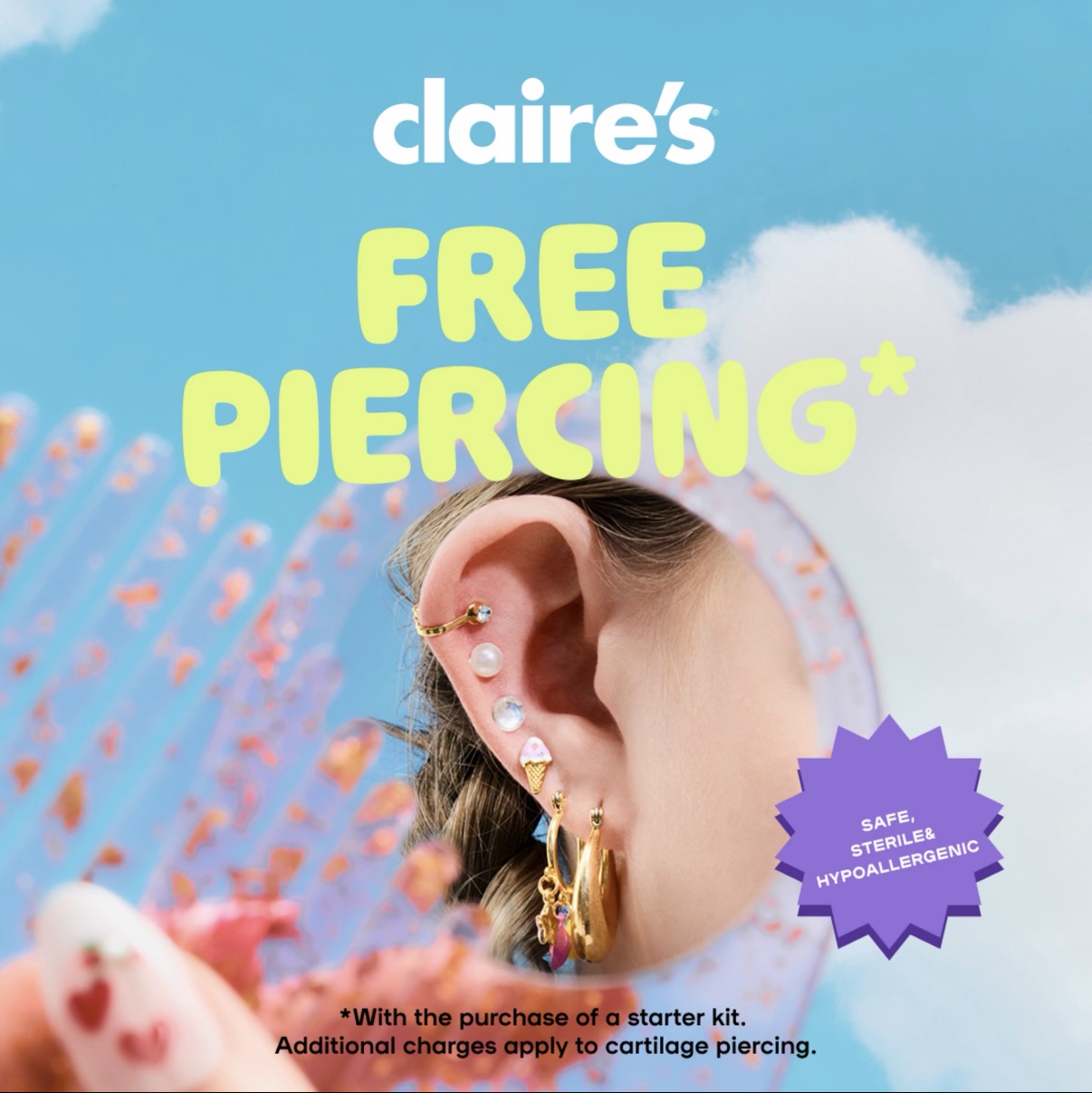 Free Piercing | Claire's at Regent Mall | Mallfinder.ca